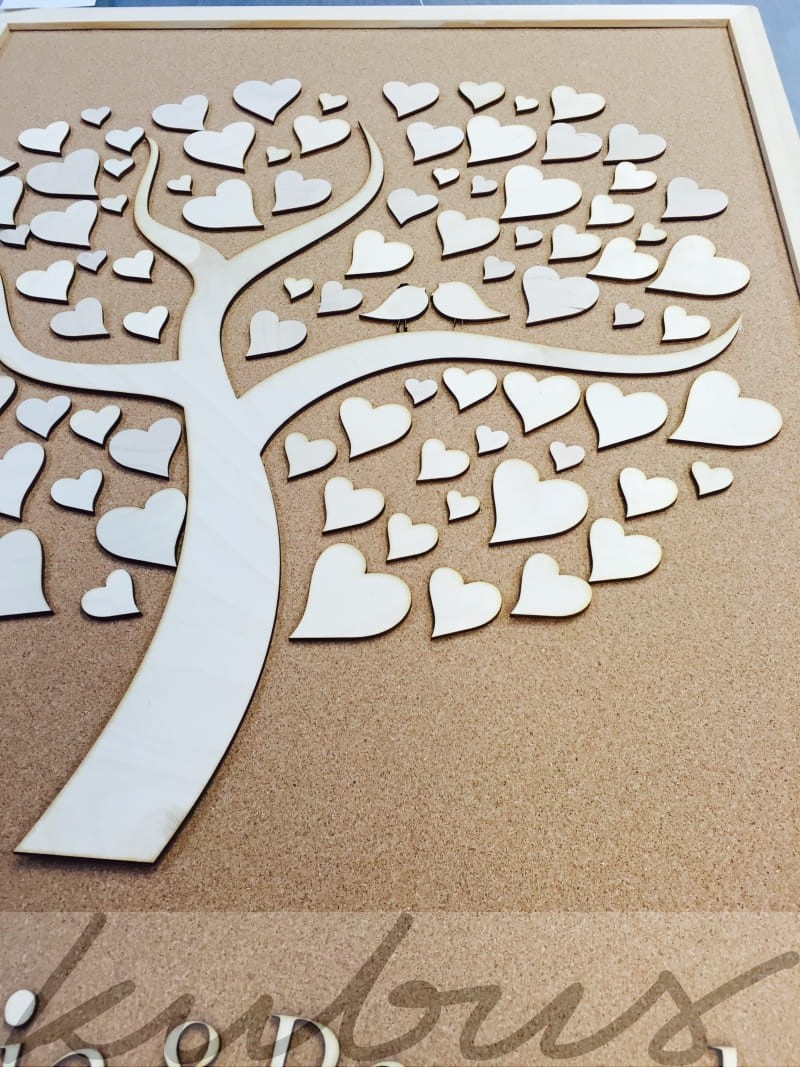Wykonana jest na tablicy korkowej wielkości 50x60 cm wyklejana ręcznie z pojedynczych elementów wycinanych ze sklejki sosnowej suchotrwałej. Pozostaje wspaniałą pamiątką na wiele lat oraz ozdobą w domu.