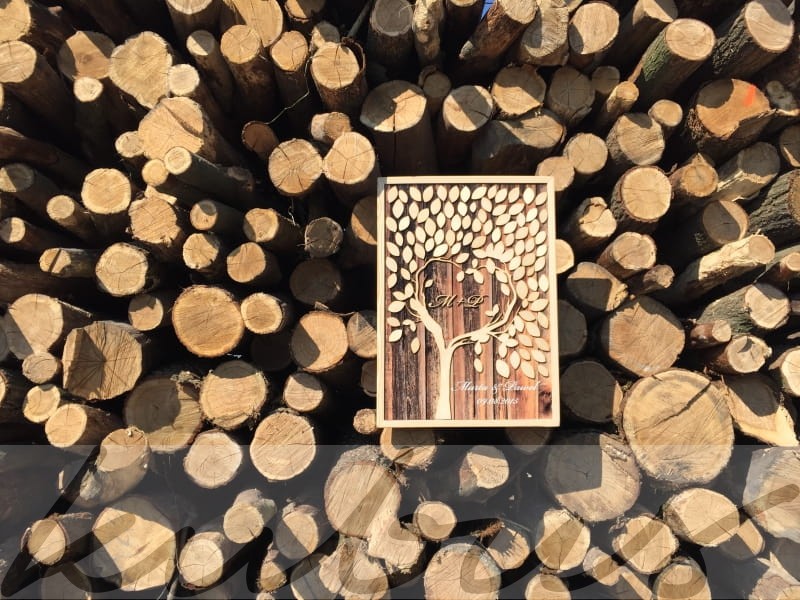 Do wyboru jest kilka propozycji drzewa oraz krojów pisma w którym można spersonalizować księgę gości.