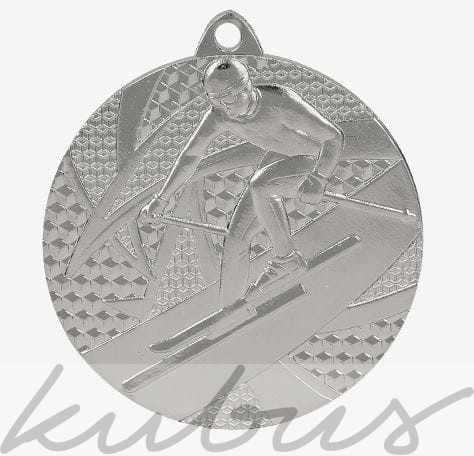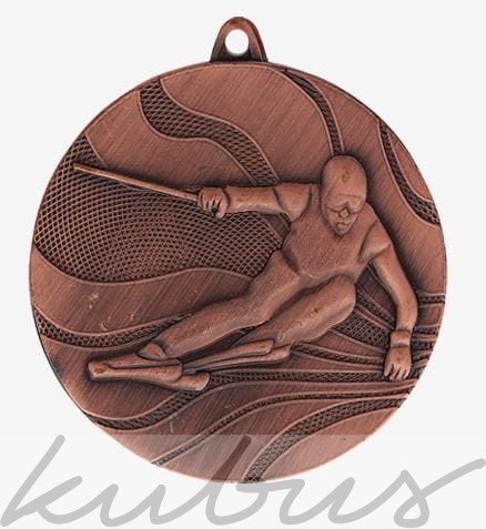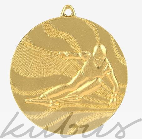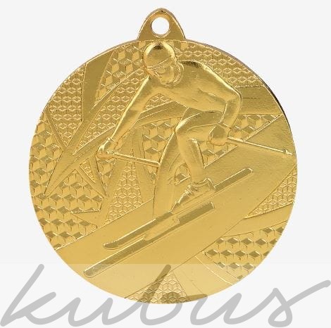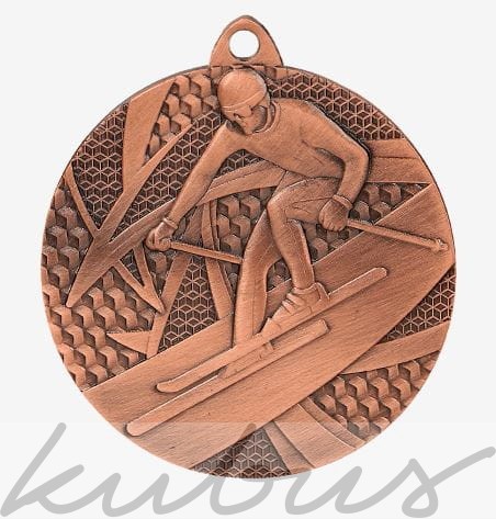 Medal z motywem motyw narciarza podczas zjazdu tworzy atrakcyjny wizualnie efekt idealnie nadając się na nagrodę dla uczestników zawodów narciarskich.
