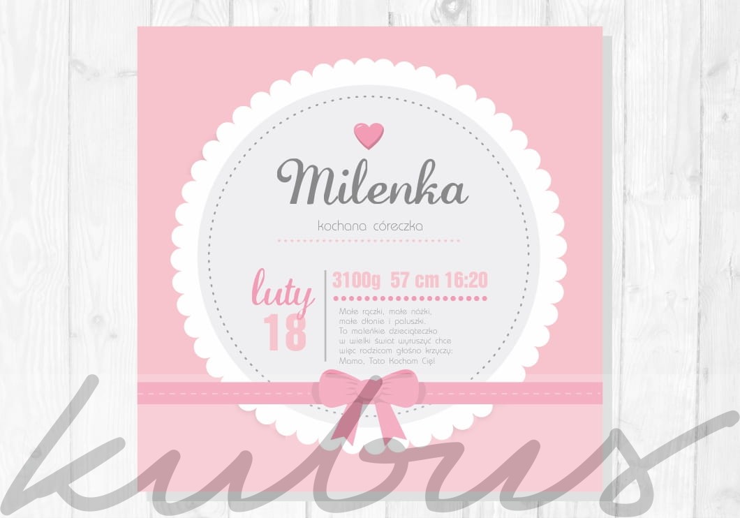 Metryczka urodzenia dziecka śliczny prezent