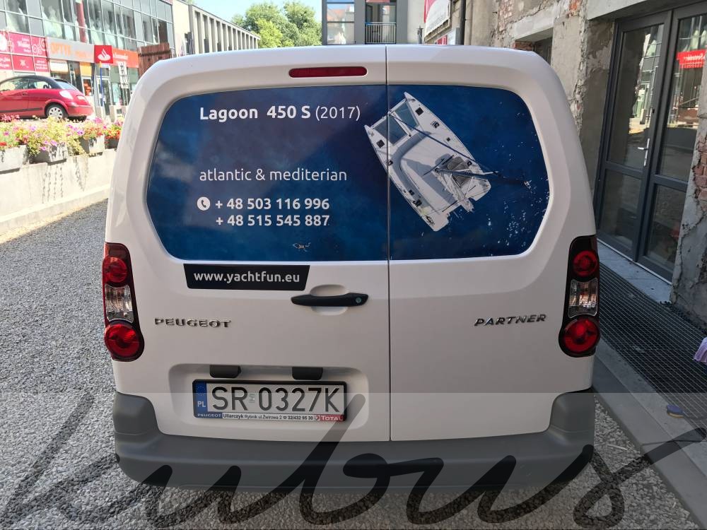 - oklejeniem na drzwiach i tylniej klapie samochodu