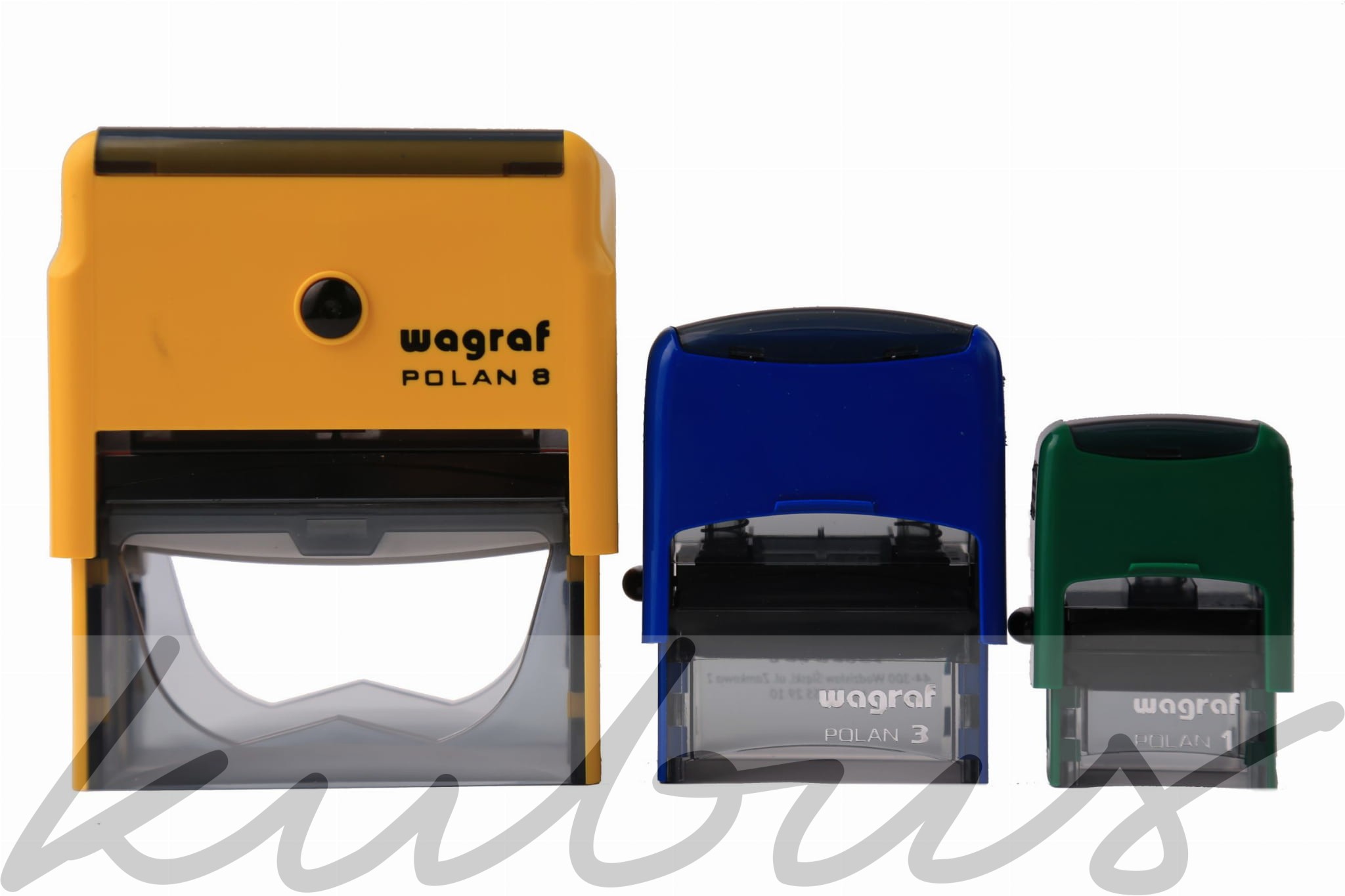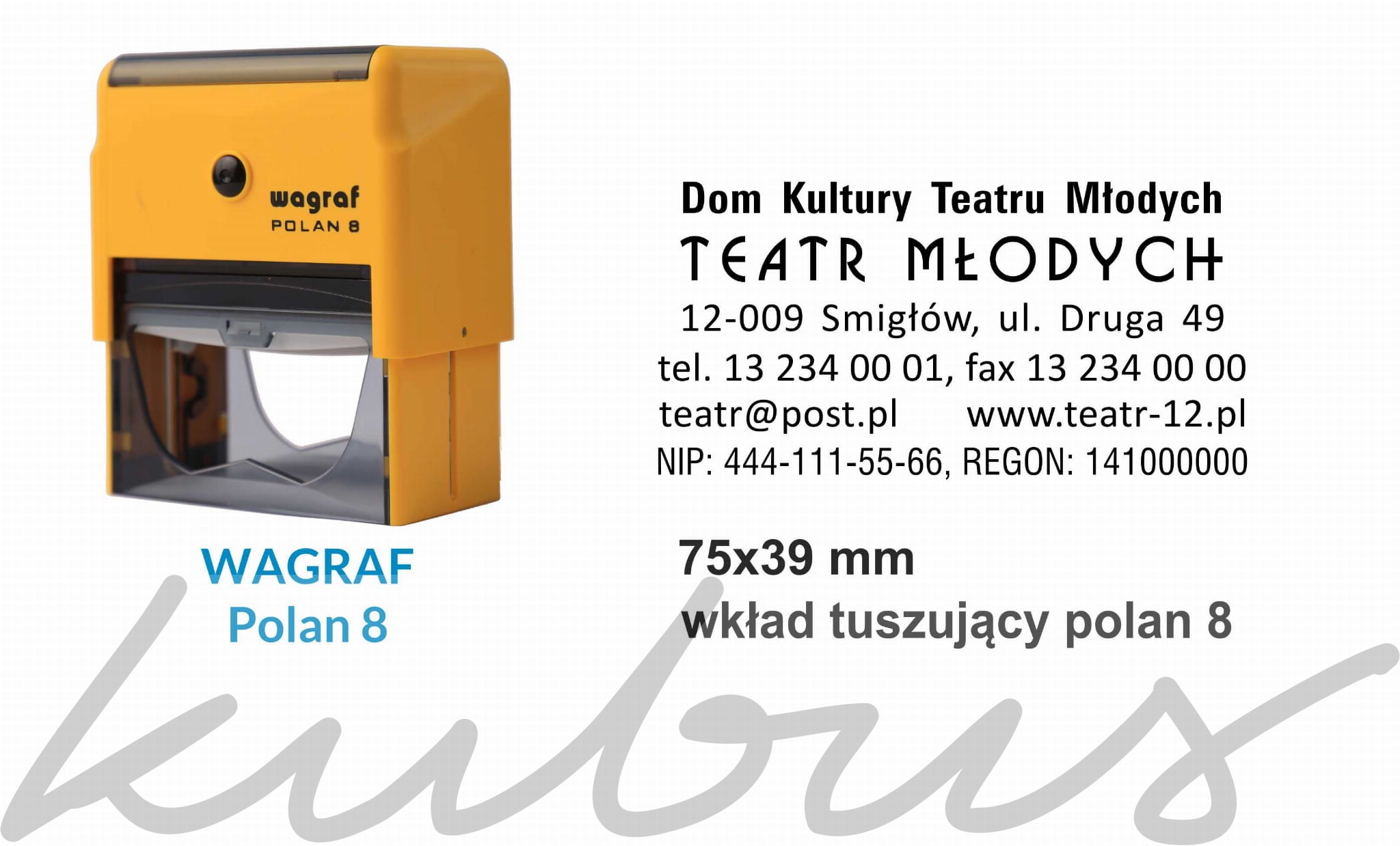 Automat Wagraf Polan 8 z miejscem na pieczątkę wielkości 75x39mm. Cena dotyczy automatu z gumką wykonaną z gumy grawerowanej wielkości 75x39mm.