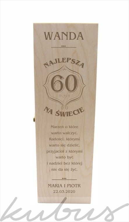Skrzynka drewniana to eleganckie opakowanie do wina lub innego alkoholu. Ten prezent sprawi, że będzie on niezapomniany i niepowtarzalny. Wzór z przodu skrzynki wykonany metodą laserową, która charakteryzuję się trwałością i nieścieralności.