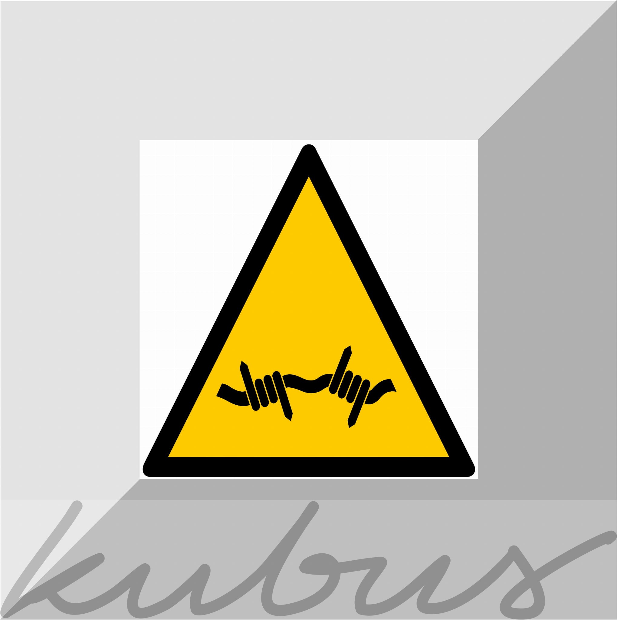 Tablica, tabliczka, znak BHP: ostrzeżenie przed drutem kolczastym